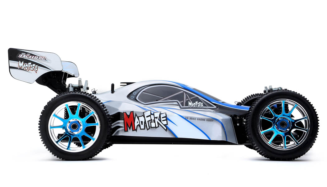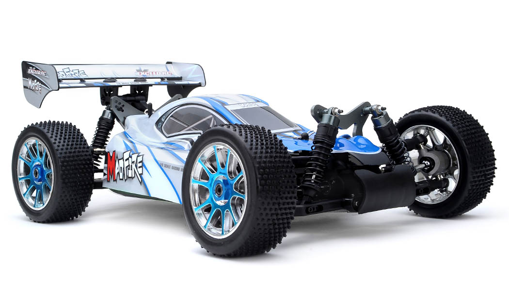 Este enorme Buggy MadFire de 2.4Ghz 1/8 viene con motor Level .21 para una mayor velocidad, chasis de aluminio pulido para proporcionar un aspecto limpio y robusto, amortiguadores ajustables para tener un aterrizaje perfecto, un tanque de combustible más grande que puede contener 125cc. La espectacularidad del MadFire se puede ver desde el primer momento cuando se examina a primera vista, desde el interior bien construido hasta los magníficos diseños exteriores. Desde el paragolpes delantero hasta el parachoques trasero, todas las piezas han sido construidas para durar. Incluido en el MadFire se encuentran el silenciador de aluminio para una mejor protección y un mejor aspecto, y un servo de dirección de engranajes metálicos para servicio pesado para que no tenga que preocuparse de que se rompa. Incluso las llantas ahora son llantas de cromo endurecidas y neumáticos colosales para triunfar sobre el mundo. Utilice el MadFire para escalar terreno de carretera, colinas pedregosas, patios rocosos o donde sea que el camino lo lleve. Porque el MadFire liderará el camino hacia nuevos estándares para el mundo RC y conquistará a todos.