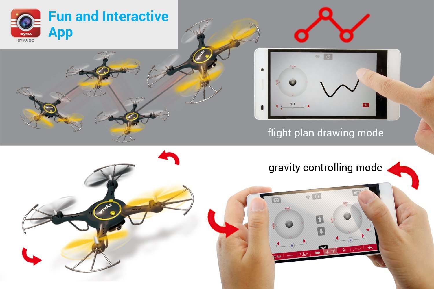 APLICACIÓN DIVERTIDA E INTERACTIVA: este dron Syma se puede utilizar con la nueva aplicación integrada de teléfono inteligente que viene con toneladas de características divertidas, como el plan de vuelo y el modo de control de la gravedad.